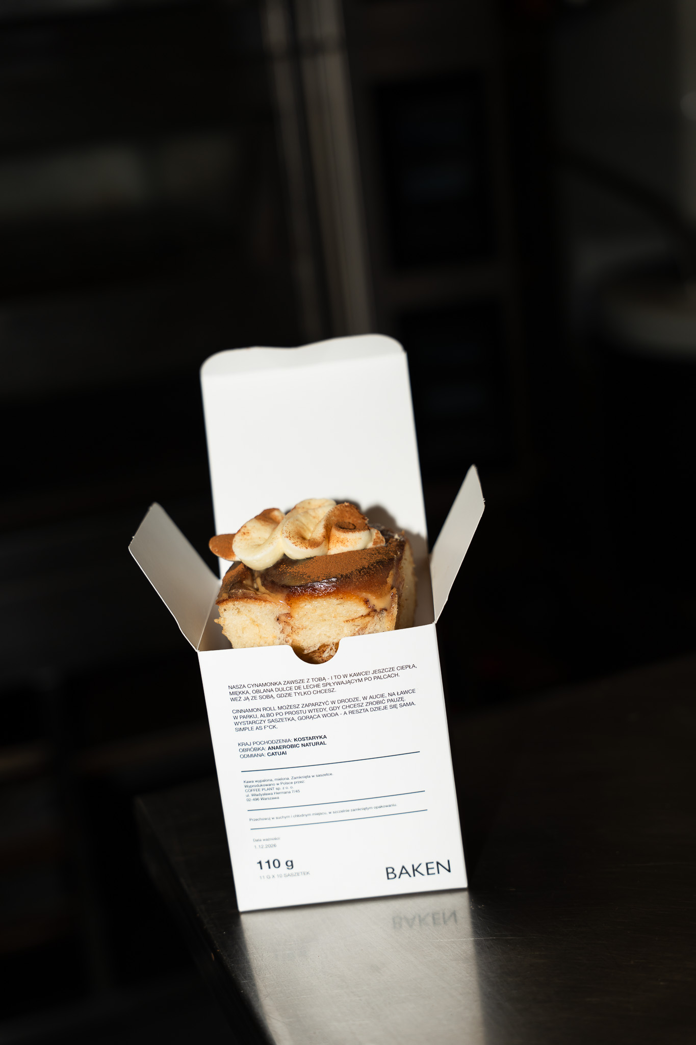 NASZA CYNAMONKA ZAWSZE Z TOBĄ – I TO W KAWCE! JESZCZE CIEPŁA, MIĘKKA, OBLANA DULCE DE LECHE SPŁYWAJĄCYM PO PALCACH. WEŹ JĄ ZE SOBĄ, GDZIE TYLKO CHCESZ. CINNAMON ROLL możesz zaparzyć w drodze, w aucie, na ławce w parku, albo po prostu wtedy, gdy chcesz zrobić pauzę. WYSTARCZY SASZETKA, GORĄCA WODA – A RESZTA DZIEJE SIĘ SAMA. SIMPLE AS F*CK. KRAJ POCHODZENIA: KOSTARYKA OBRÓBKA: ANAEROBIC NATURAL ODMIANA: CATUAI 110G 11 G X 10 SASZETEK BAKEN CINNAMIN ROLL FLAVOR INSIDE
