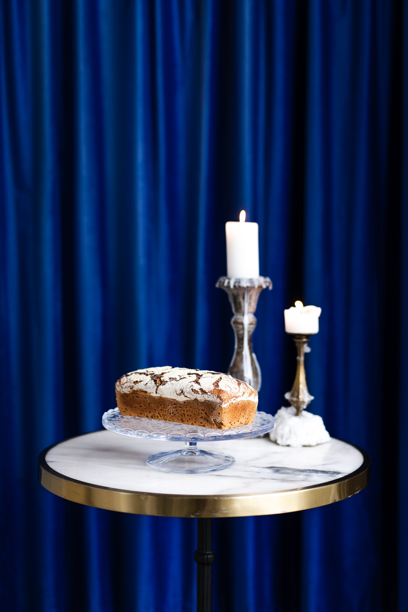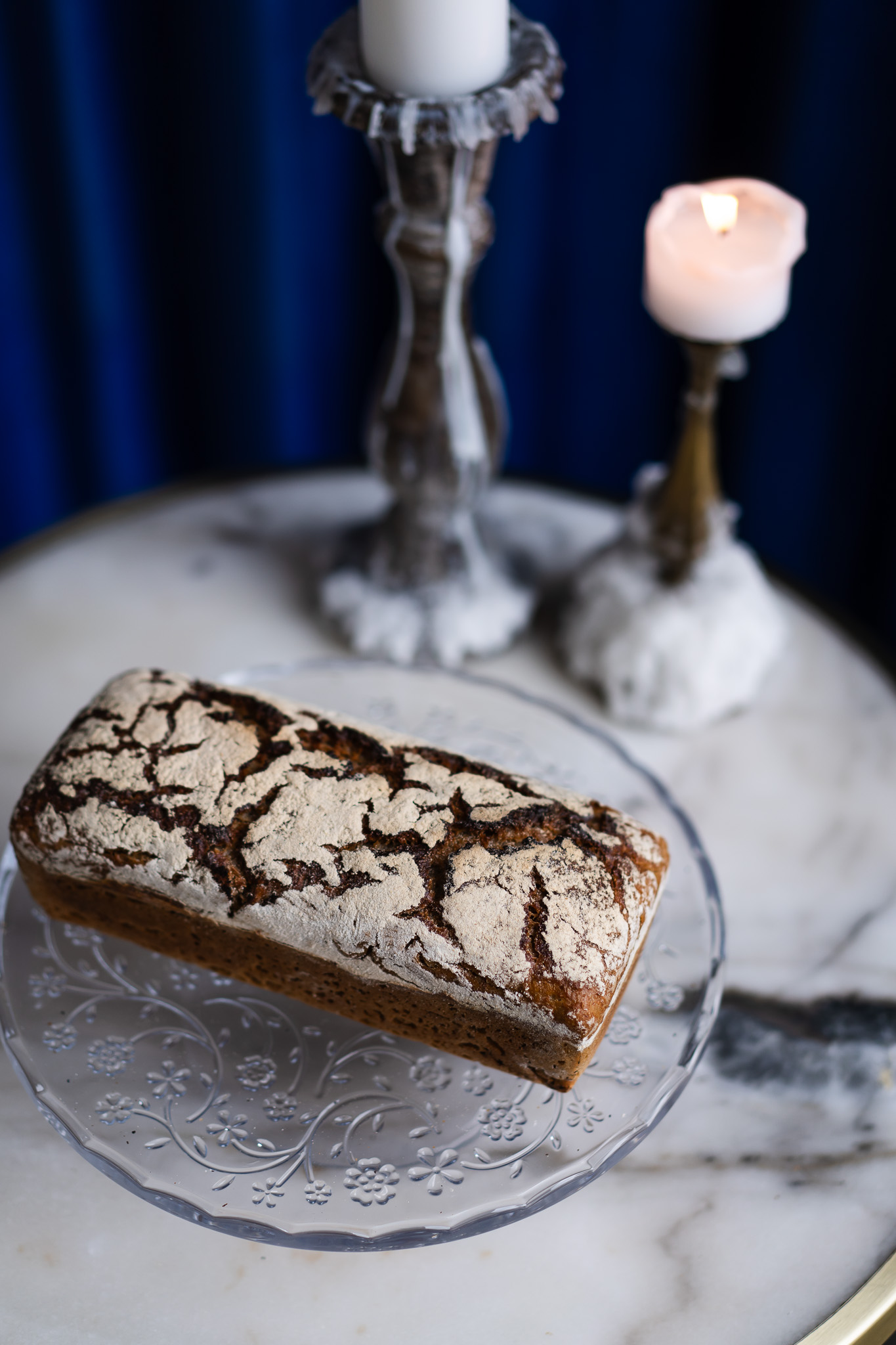 chleb pszenny na żytnim zakwasie z ryżem gotowanym na mleku owsianym